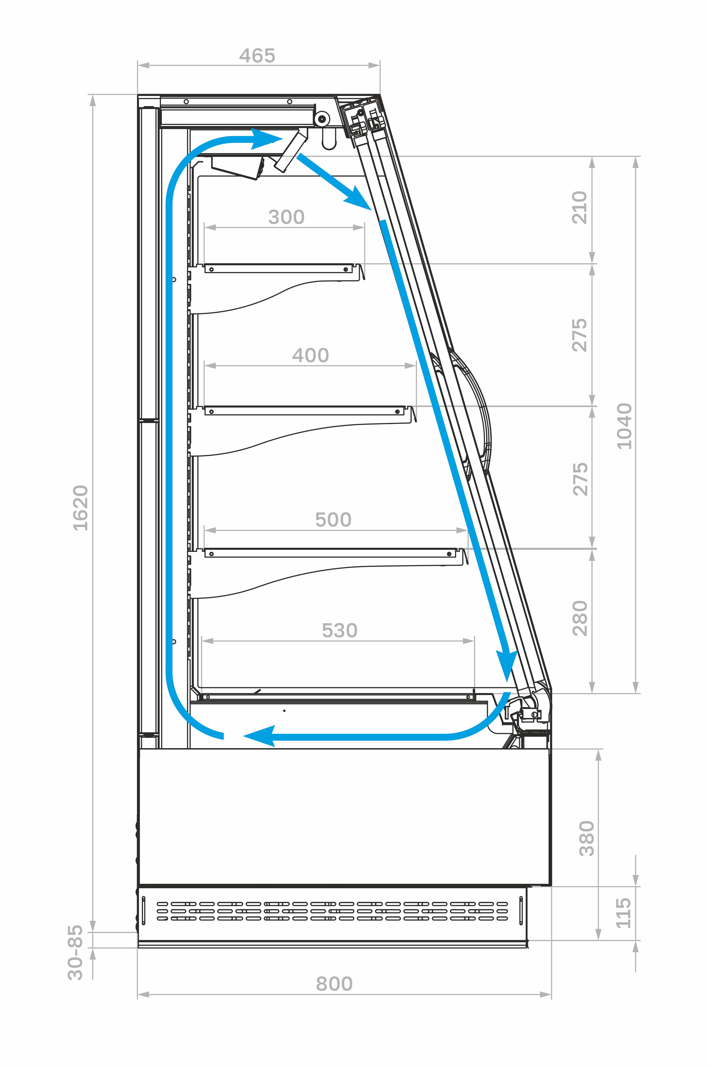 Витрина должна быть установлена не ближе 2 м от отопительных приборов. Запрещается эксплуатация витрины при попадании на нее прямых солнечных лучей, воздушных потоков от кондиционеров, вентиляторов и обогревателей.